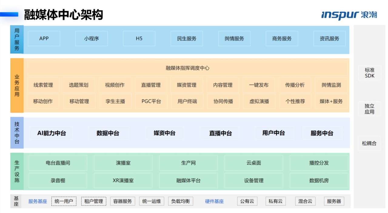 在满足传统业务流程的同事,满足媒体融合的多生产、多业务的流程。打造中台式数据中台,涵盖媒体策、采、编、播、分、发、评、舆全流程管理。有效支撑媒体融合开展下的电视台、媒体组织、企业的制作、分发等需求。